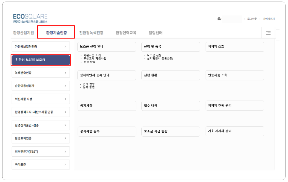 1) 친환경 보일러 보조금 > 보조금 신청 클릭